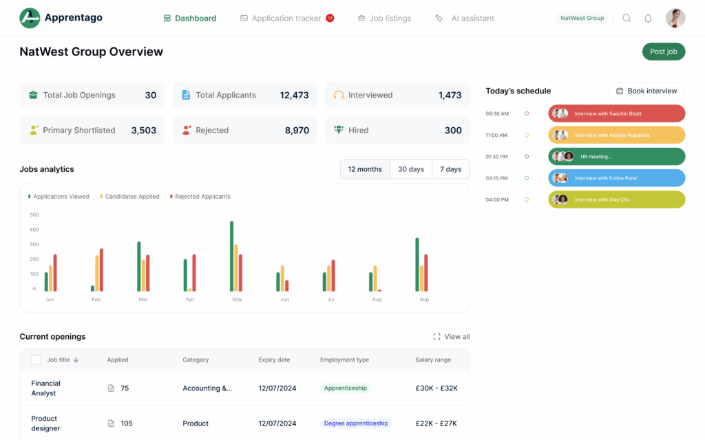 From posting roles to booking interviews, this is your command centre for managing early talent efficiently.